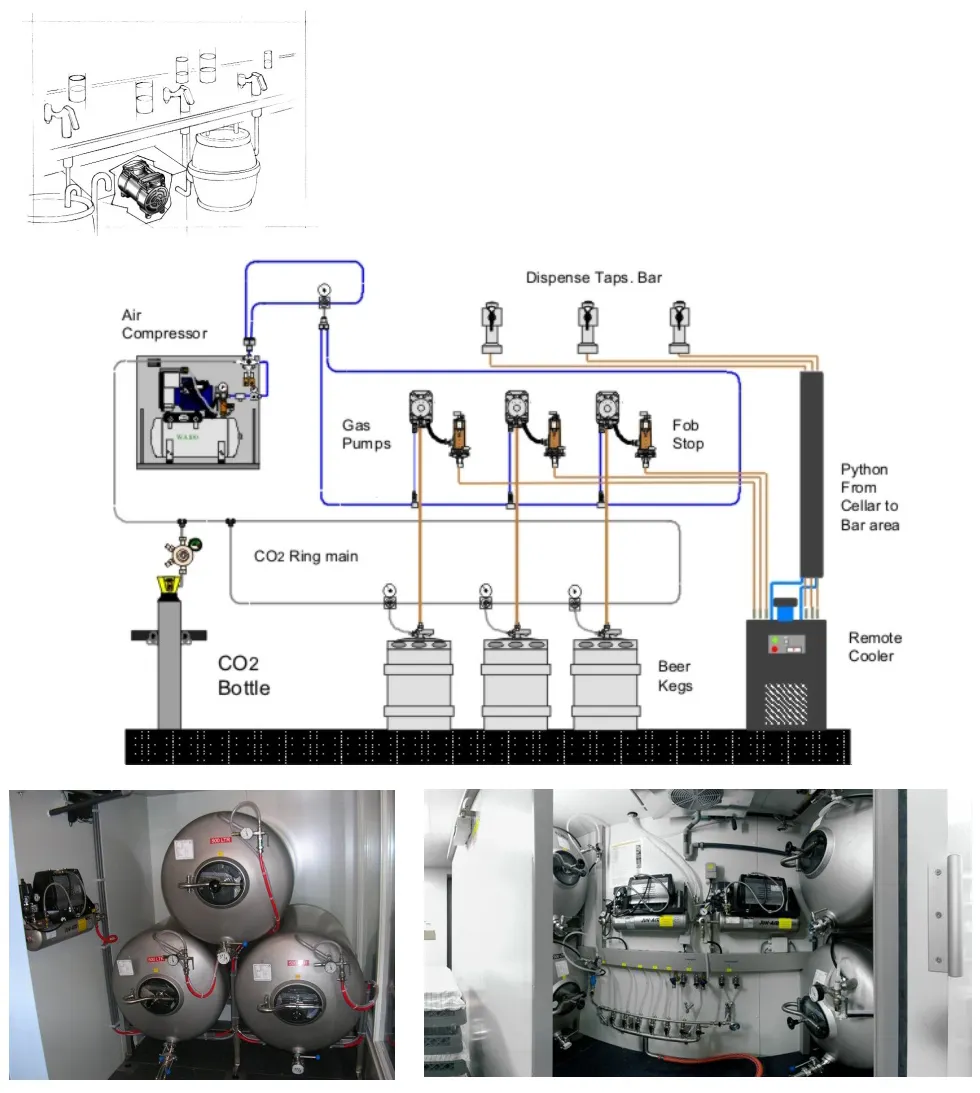 압축 공기 이용 음료 분배 장비에 이용된다.