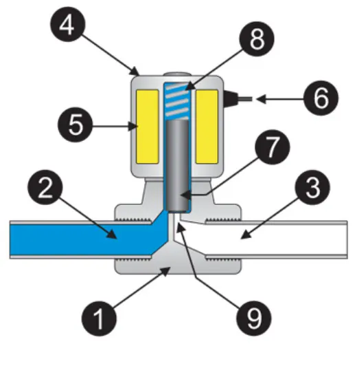 솔레노이드 벨브 : 전자석이라는 것을 배우셨을겁니다. 코일에 전기를 흘려주면 자석이 되는 원리를 이용해서 평상시에는 스프링으로 밀어서 구멍이 막혀있다가 전기가 흐르면 구멍을 막고있던 철재질의 밸브유닛이 위로 올라가면서 열리게 되는 구조입니다. 따라서 출구쪽의 재질은 자석에 붙지 않는 구리나 알루미늄으로 제작되어 있답니다.