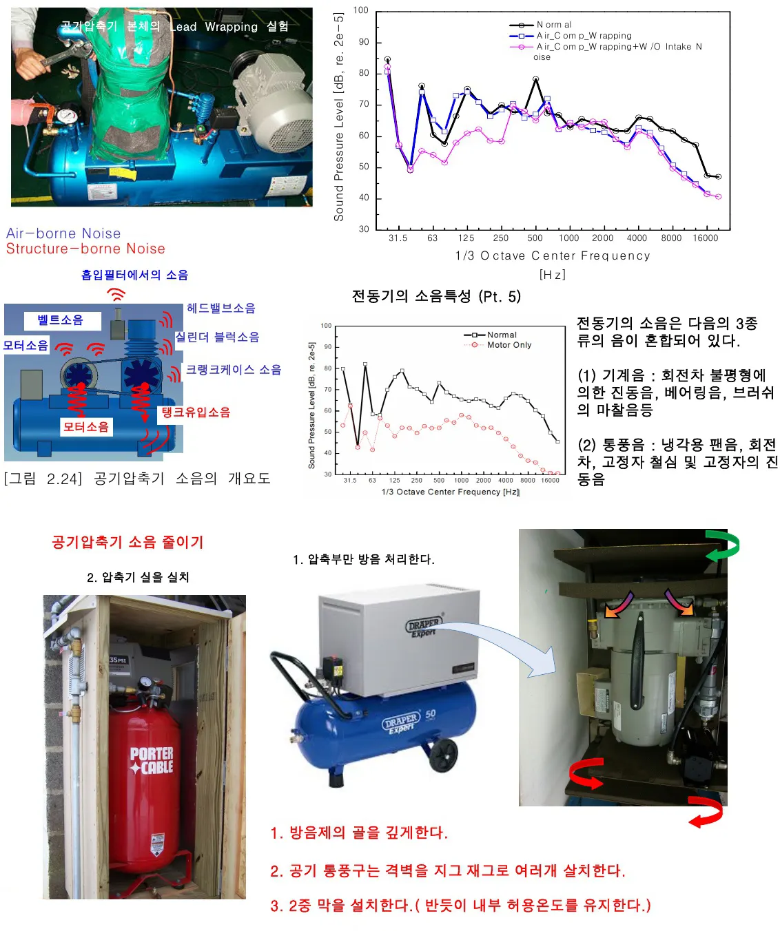 모업체 사장님께서 모대학 치과병원 병동 지하에 무급유 20마력 공기압축기를 설치하였는데 압축기 설치 후부터 밤도 아니고 오전 공기압축기 사용이 피크일때 기계실에서 귀신소리가 난다고 소비자가 해결해 달라고 한다고 본인에게 원인 파악 의뢰가 들어와서 결론내려 드린적이 있습니다. 배관 내의 소음이였습니다. 특히 4대의 에어엔드가 동시 작동 시 맥동의 일치파와 관내의 난류의 진동파가 어느 순간 일치되는 시점(맥놀이 : Ground Noise)에서는 증폭이 되어 귀신 씨나락 까먹는 소리가 납니다. 삐~~~~~~~
