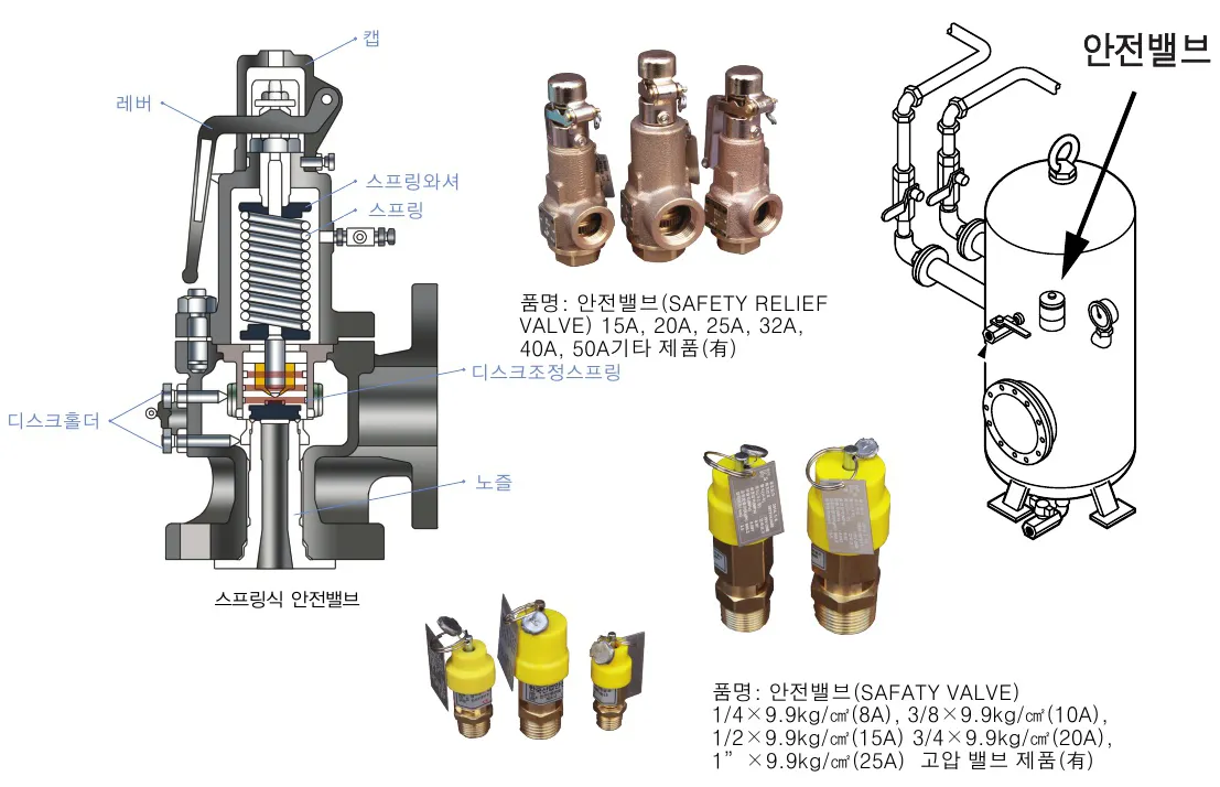 설정압력에서 개방되며 25% 과압에서 완전개방, 압력이 설정압력으로 복귀되면 닫힌다.