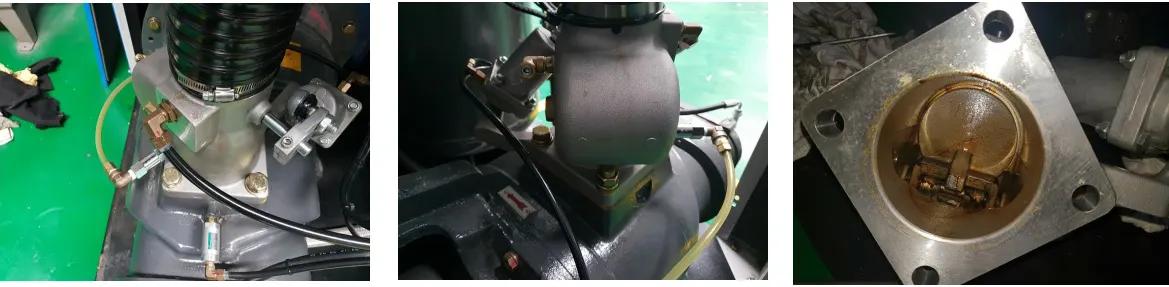 보아하니 유진꺼 같은데요. 기계 정지 시 언로딩밸브에서 오일이 역류하여 에어필터 쪽으로 나오는것 같은데 맞나요?