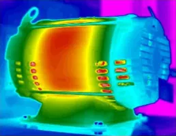 모터 안을 들여다 보면 회전하는 회전자가 있습니다. 겉에서는 안 보이지만 다른 장소보다 온도가 높습니다.