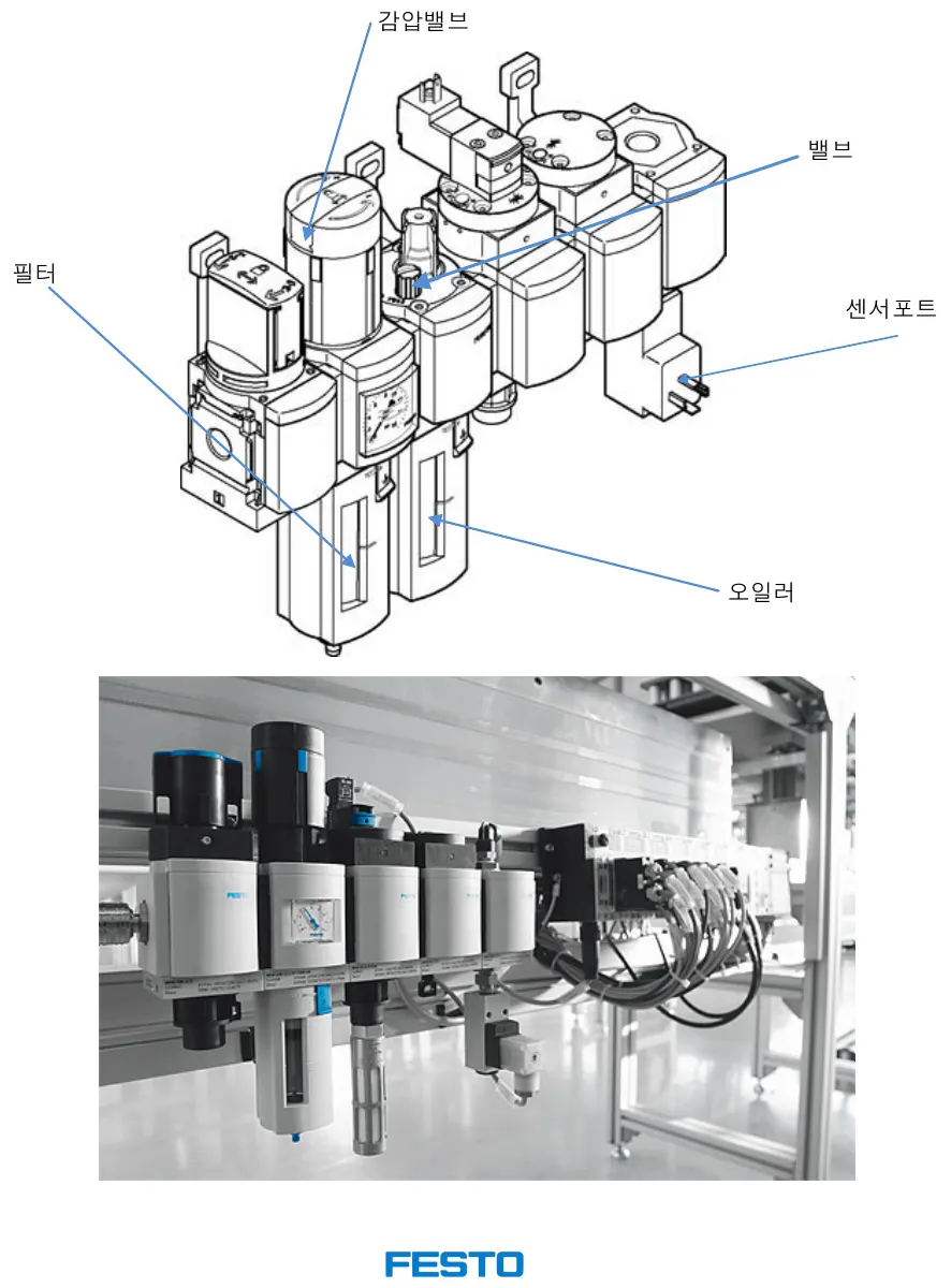 자동화 생산라인의 장비로 유입되는 압축공기의 압력, 유량, 노점 등을 압력센서 등을 통해 제어하며 설정값에서 벗어날 때 알람등을 통해 실시간 감지하는 시스템이다.
