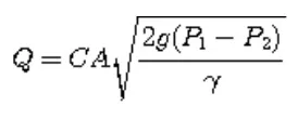 오리피스 통과유량은 다음 식으로 구할 수 있다.