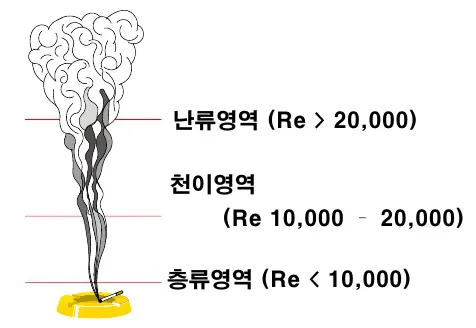 레이놀즈수가 2000이하에서는 층류역이지만, 약 2000 일 때의 관로흐름에서 층류는 난류로 천이한다