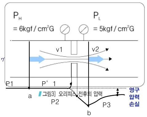 P1 , P2 : 오리피스 전·후의 압력 (kgf/cm2 )