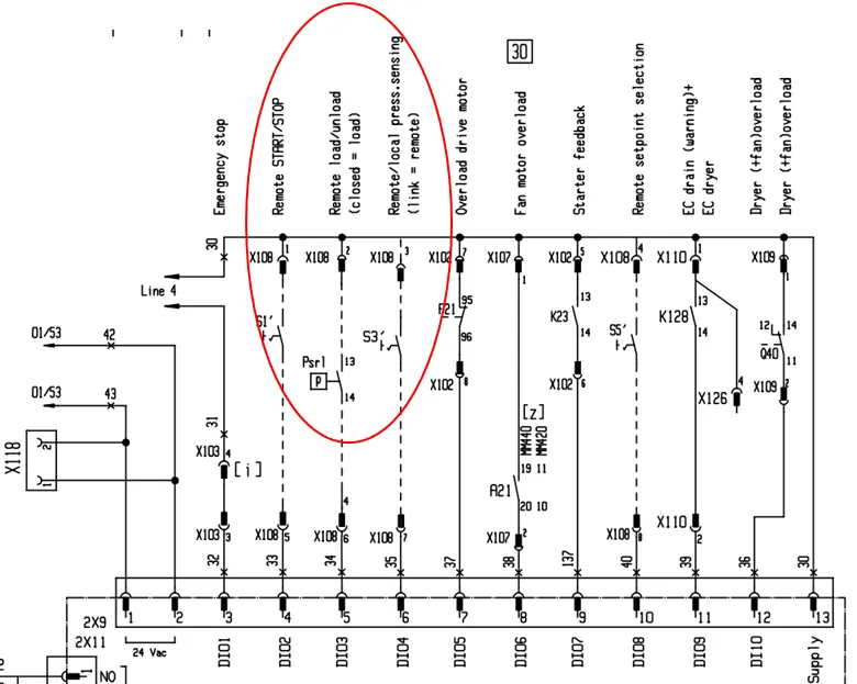 기존 SCADA(존재하는 경우) 시스템의 원격 제어가 병렬로 작동하지 않습니다. Sarlin은 원격 시작/중지/로드/언로드를 위해 압축기 제어 연결을 재 구축합니다. SB 설치 후 압축기 원격 제어는 SB에서만 가능합니다.