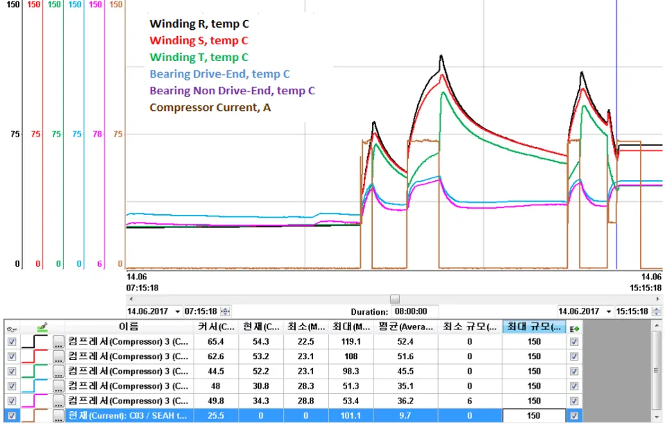 최대 압축기 특정 값, 시운전 과정에서 하루 및 시간당 시작이 설정됩니다.