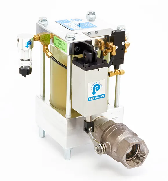 아니요. 응축수-O.K. 제품은 완전히 공압식이며 간단한 배관 연결로 설치하기 매우 쉽습니다. 전기적 드롭, 연결 또는 전기 사용이 필요하지 않습니다.