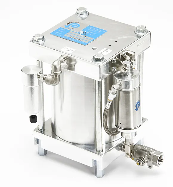 아니요. 응축수-O.K. 제품은 완전히 공압식이며 간단한 배관 연결로 설치하기 매우 쉽습니다. 전기적 드롭, 연결 또는 전기 사용이 필요하지 않습니다.