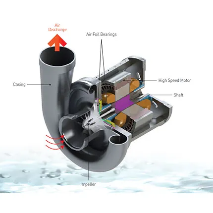 ·에어포일베어링, 고속모터, 고효율 임펠러 등 핵심 기술의 최적 조화로 안정성과 신뢰성이 높은 제품을 제공합니다.