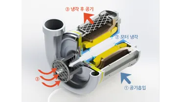 흡입되는 공기를 냉각핀을 통과시켜 모터 열을 효과적으로 냉각